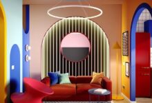 Pendant lights or wall sconces add layers of illumination and serve as eye-catching decor elements, enhancing the room’s modern aesthetic.