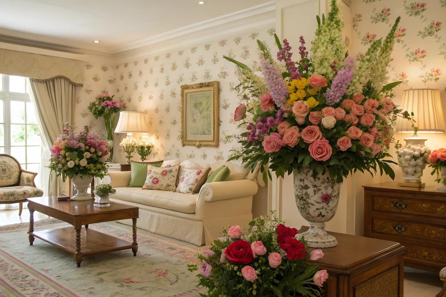 Inject vibrancy into your interiors with floral arrangements featuring bold blooms. My favorite combo is bright marigolds paired with cheerful zinnias, creating an uplifting atmosphere.