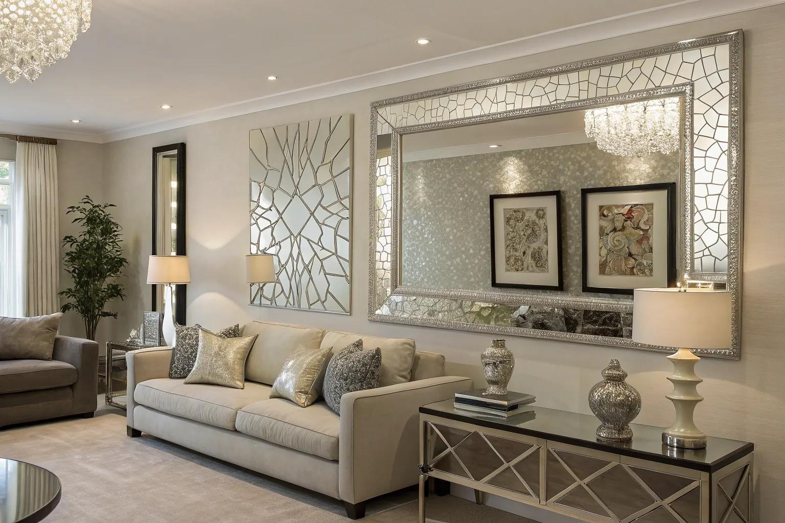 Abstract mirror compositions bring a sleek, contemporary vibe.