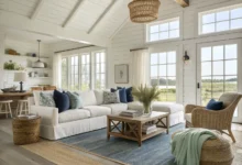Embrace cozy elegance with farmhouse living rooms featuring natural wood floors. The warm, rustic tones create a welcoming atmosphere, blending…