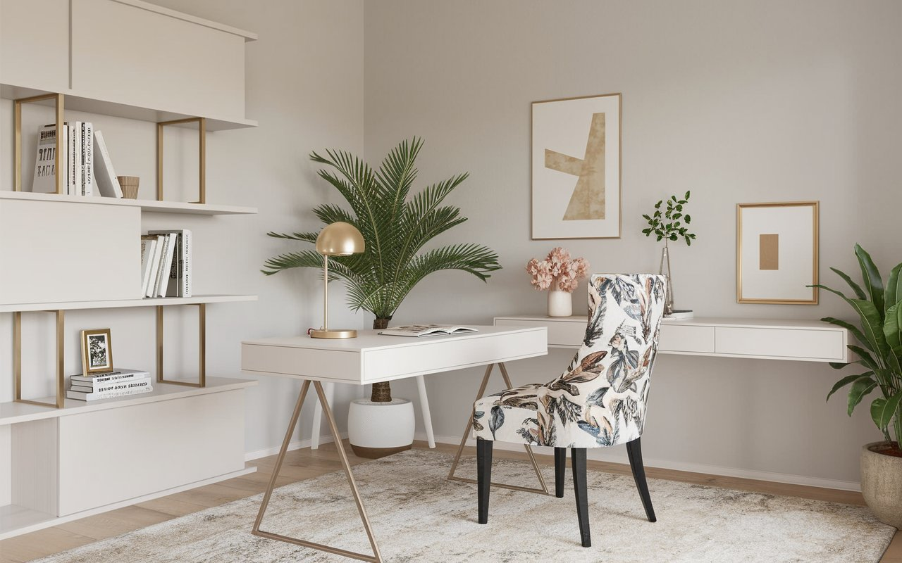 Choose a desk that doubles as a centerpiece for your office. Options like a marble-top desk with gold legs or a mirrored desk can dramatically uplift the room’s style while providing practical workspace. These eye-catching pieces set the tone for the entire design.