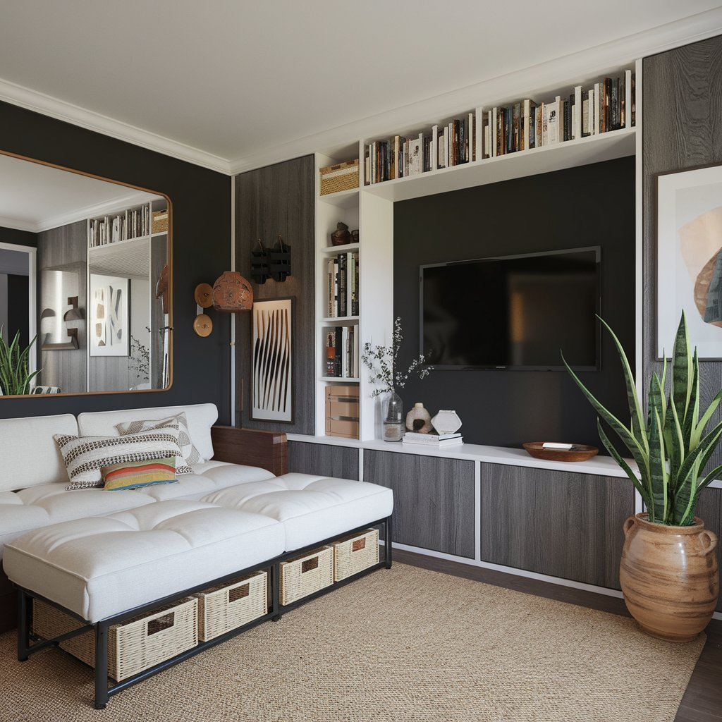 Bring the outdoors inside with vertical planters, hanging pots, and a dedicated plant care station. Complement the greenery with a natural fiber daybed or minimalist futon for a fresh, calming vibe.