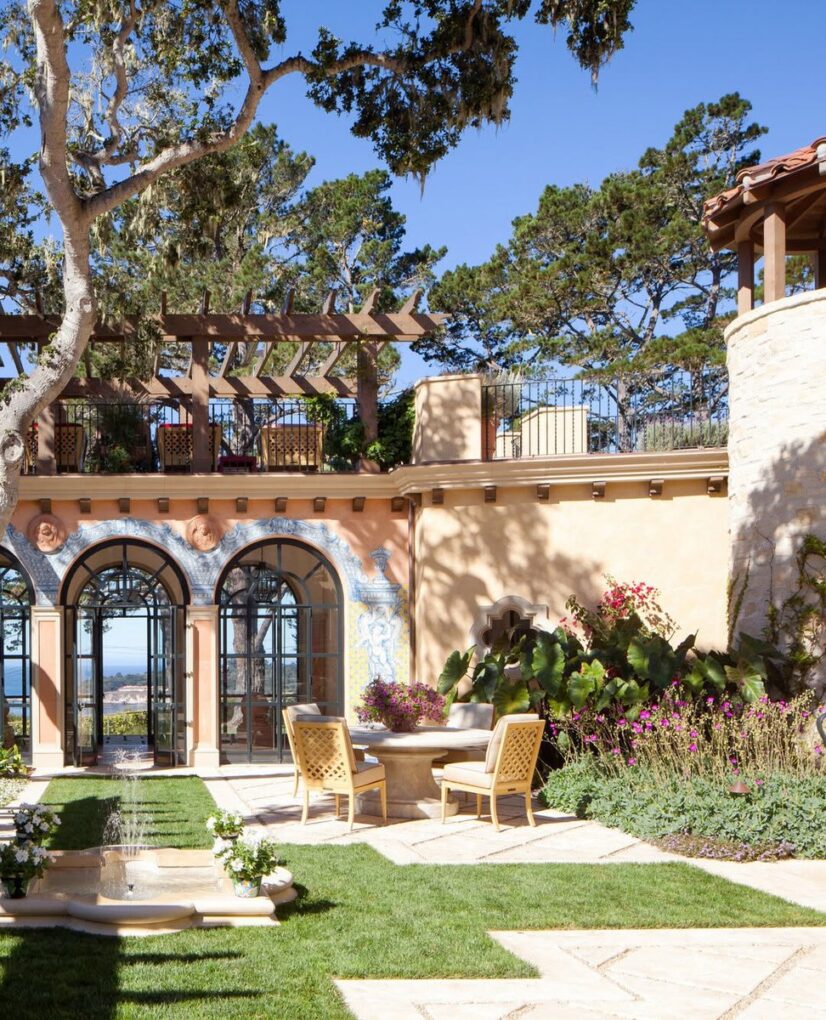 Inspired by the sun-soaked coasts of the Mediterranean, this patio style features colorful ceramic or terracotta tiles paired with stucco walls and wrought iron details. Lush plants and textured surfaces create a warm, inviting environment reminiscent of a European villa. This design is perfect for those who want to infuse their outdoor space with timeless elegance and a splash of vibrant culture.