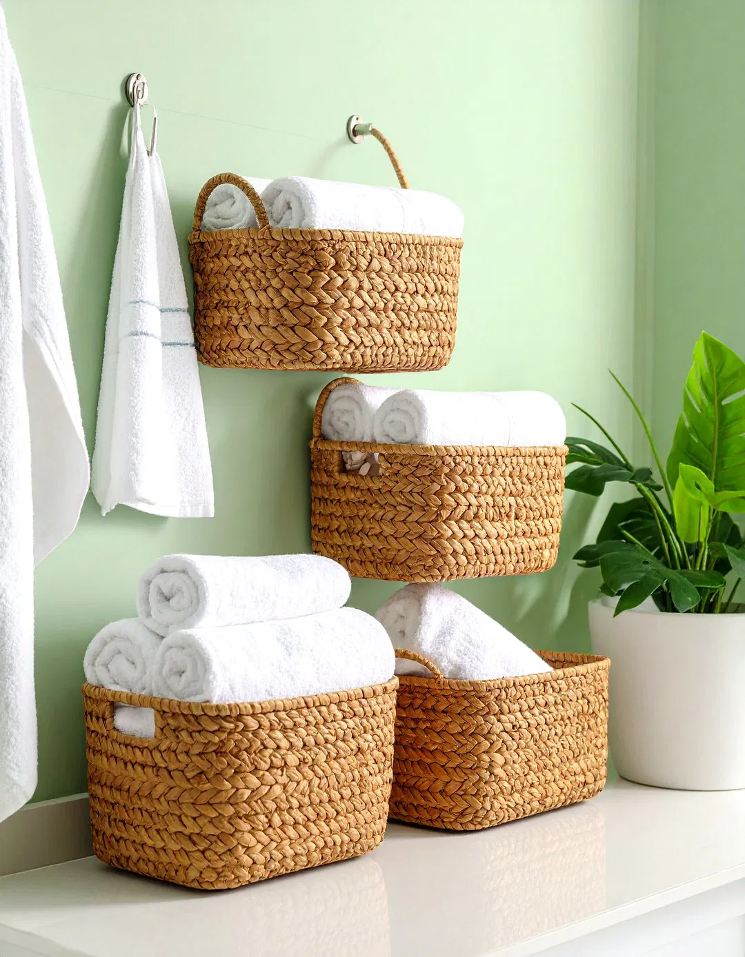Upgrade your bathroom mirror to a wall-mounted medicine cabinet that doubles as hidden storage. Modern designs feature adjustable shelves, LED lighting, and even built-in charging stations for electric toothbrushes. Positioned at eye level, these cabinets keep medications and skincare products organized and out of sight, reducing countertop clutter. The mirrored front enhances light reflection, making small bathrooms appear brighter and more spacious.