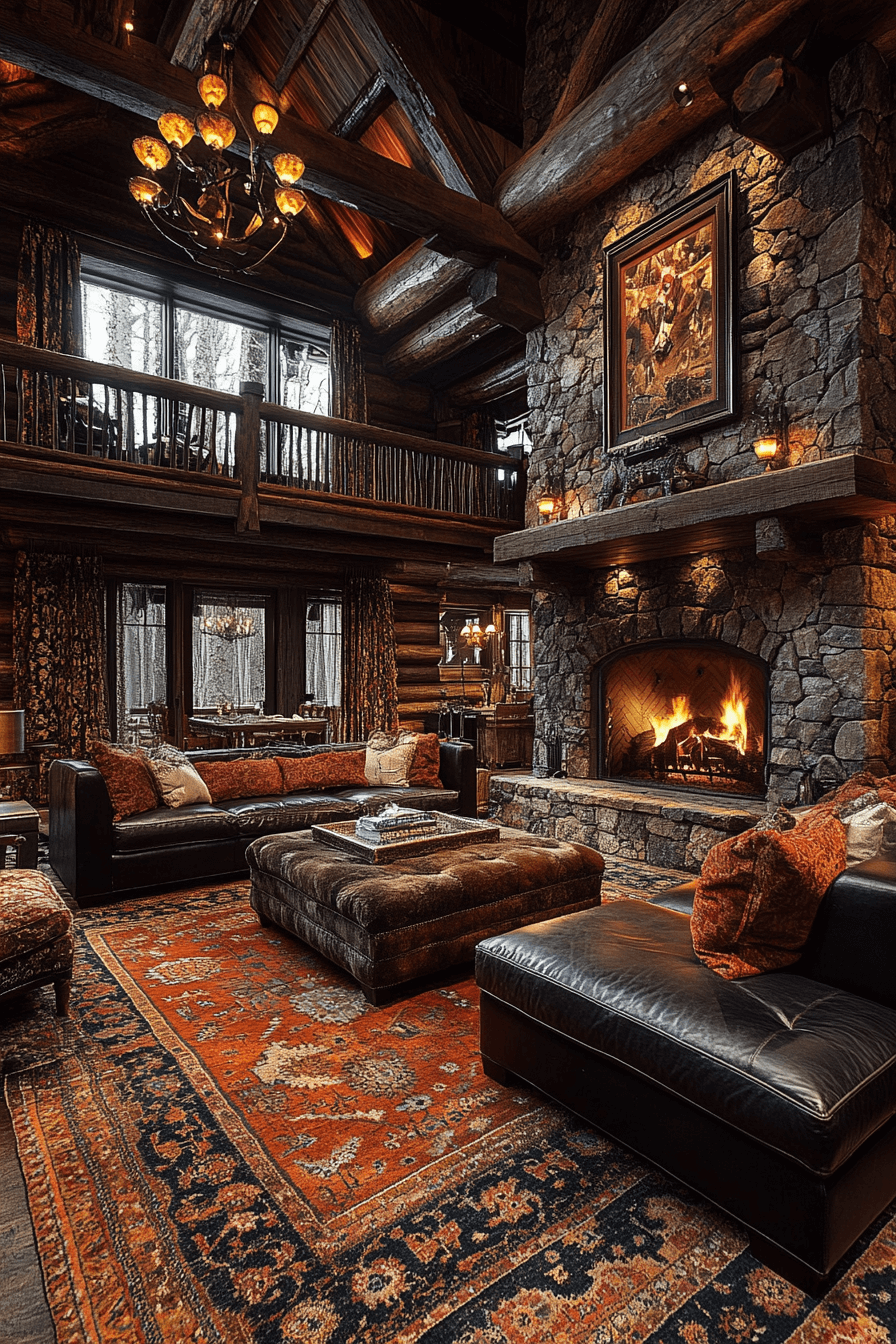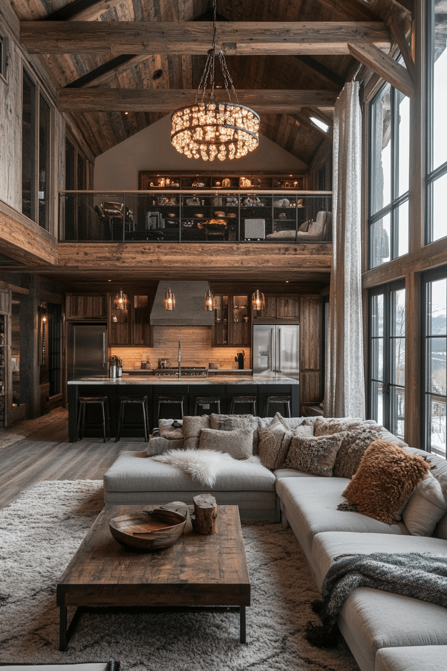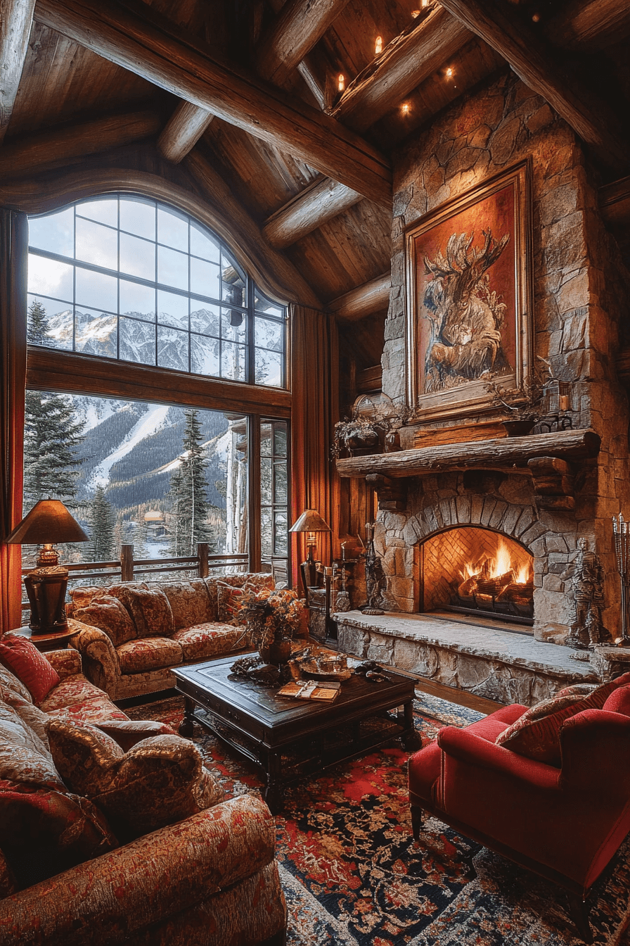 Sumptuous furnishings and rich textures meet raw stone and timber, crafting a space that is both luxurious and grounded. This style celebrates mountain elegance, perfect for those who desire refined comfort amidst nature.