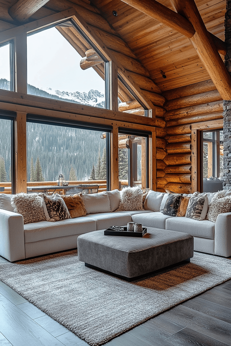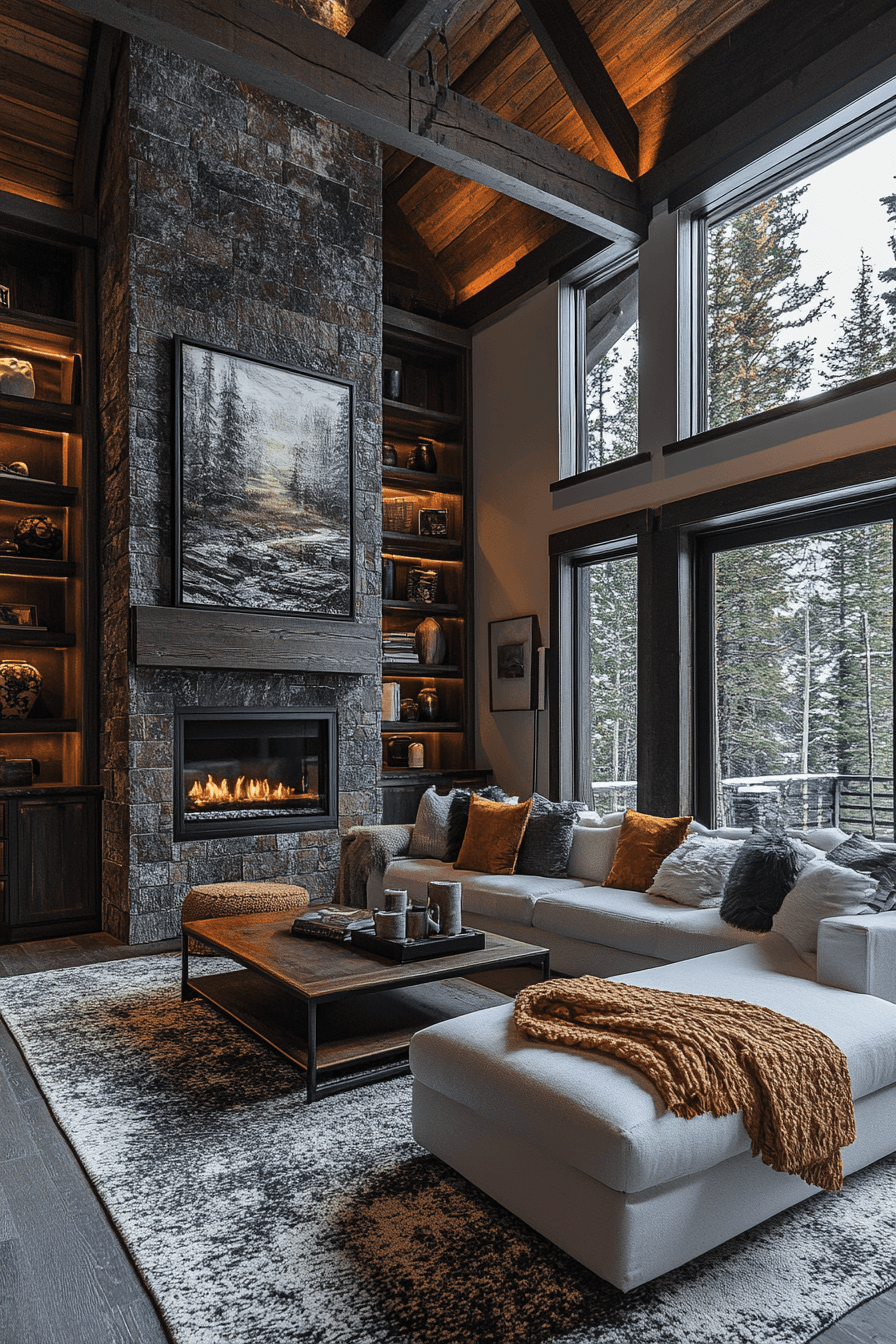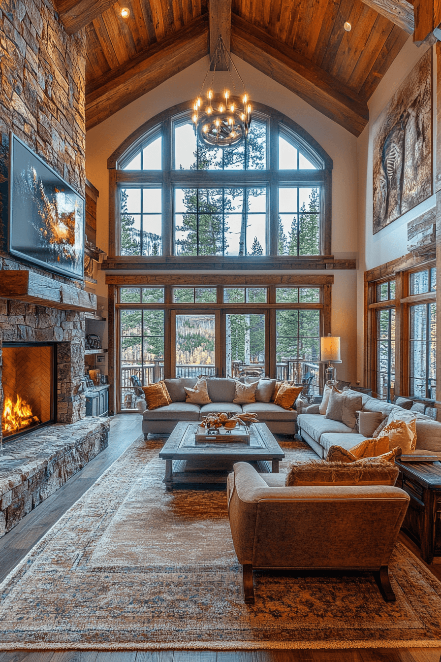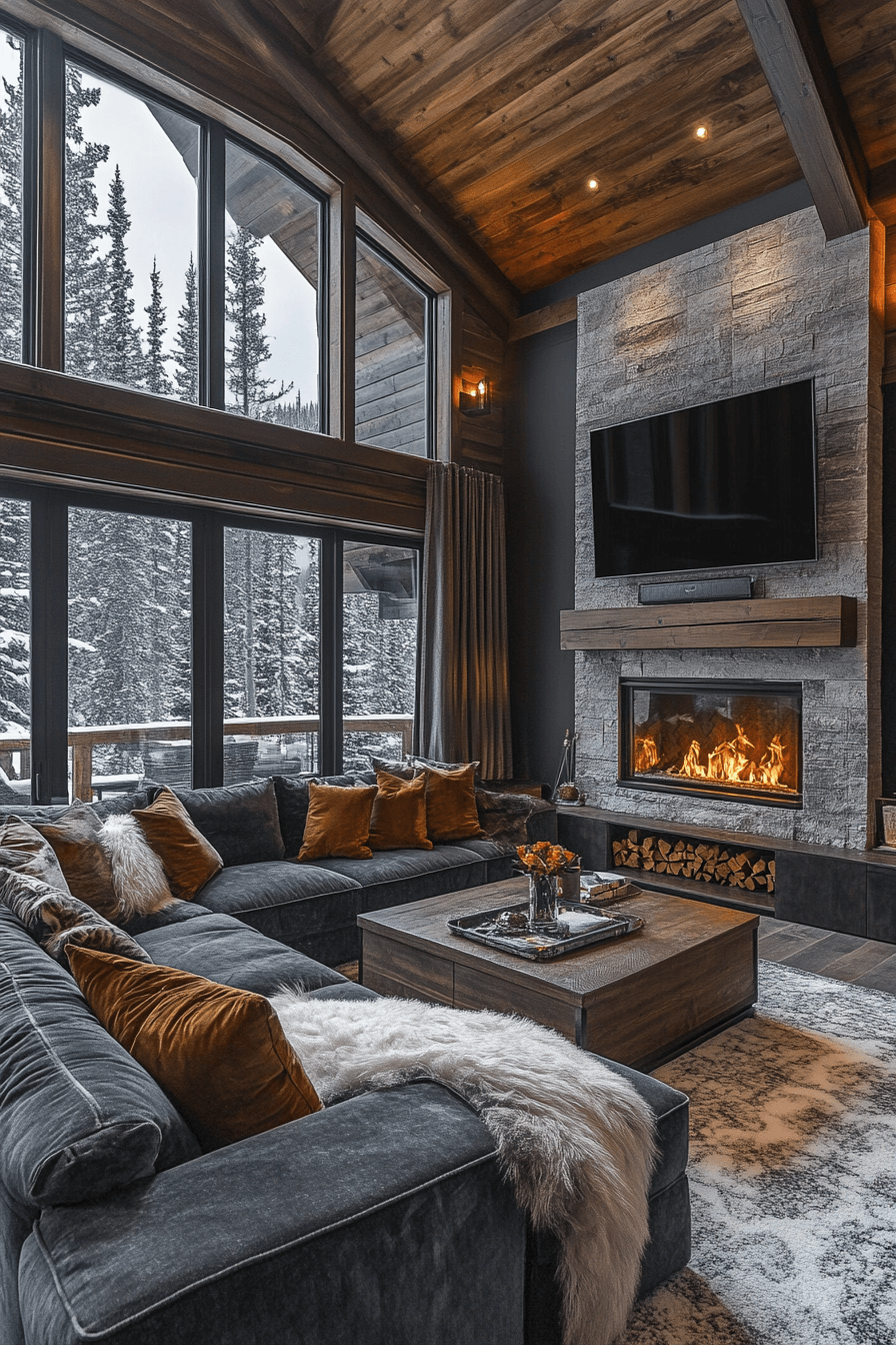 Sumptuous furnishings and rich textures meet raw stone and timber, crafting a space that is both luxurious and grounded. This style celebrates mountain elegance, perfect for those who desire refined comfort amidst nature.