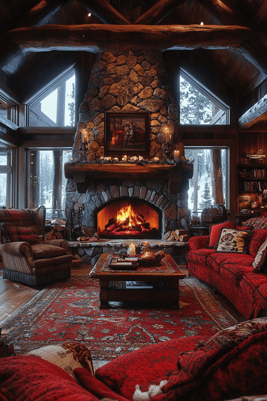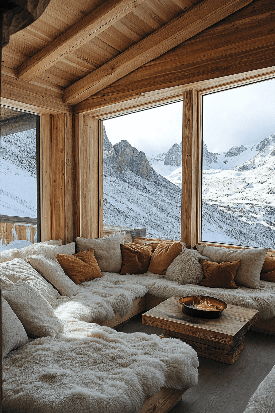 Rich wood hues, sumptuous fabrics, and the comforting glow of a fireplace create an inviting refuge from the cold. Soft ambient lighting and intimate details transform every nook into a sanctuary of warmth, perfect for snowy nights and tranquil mornings alike.