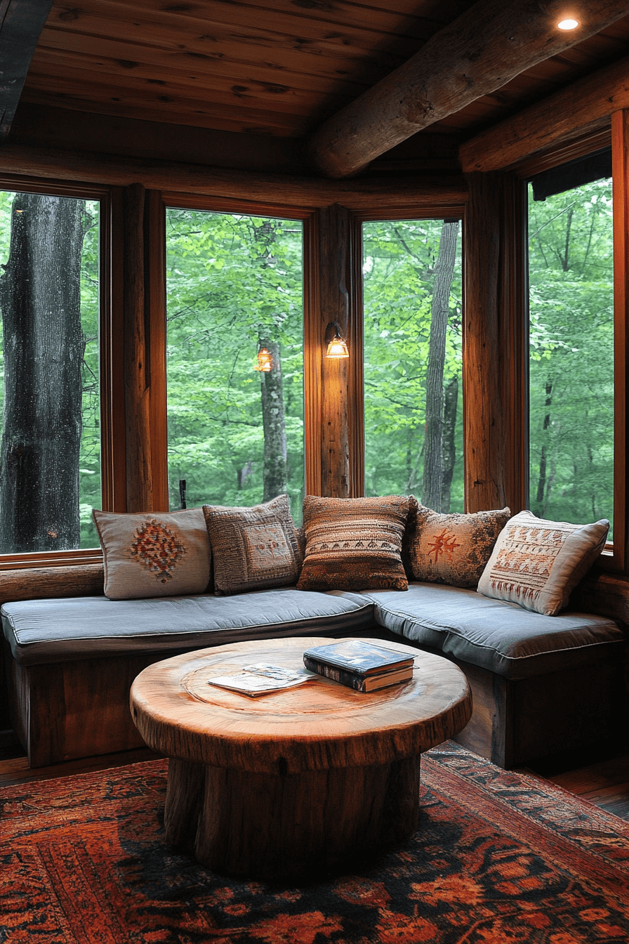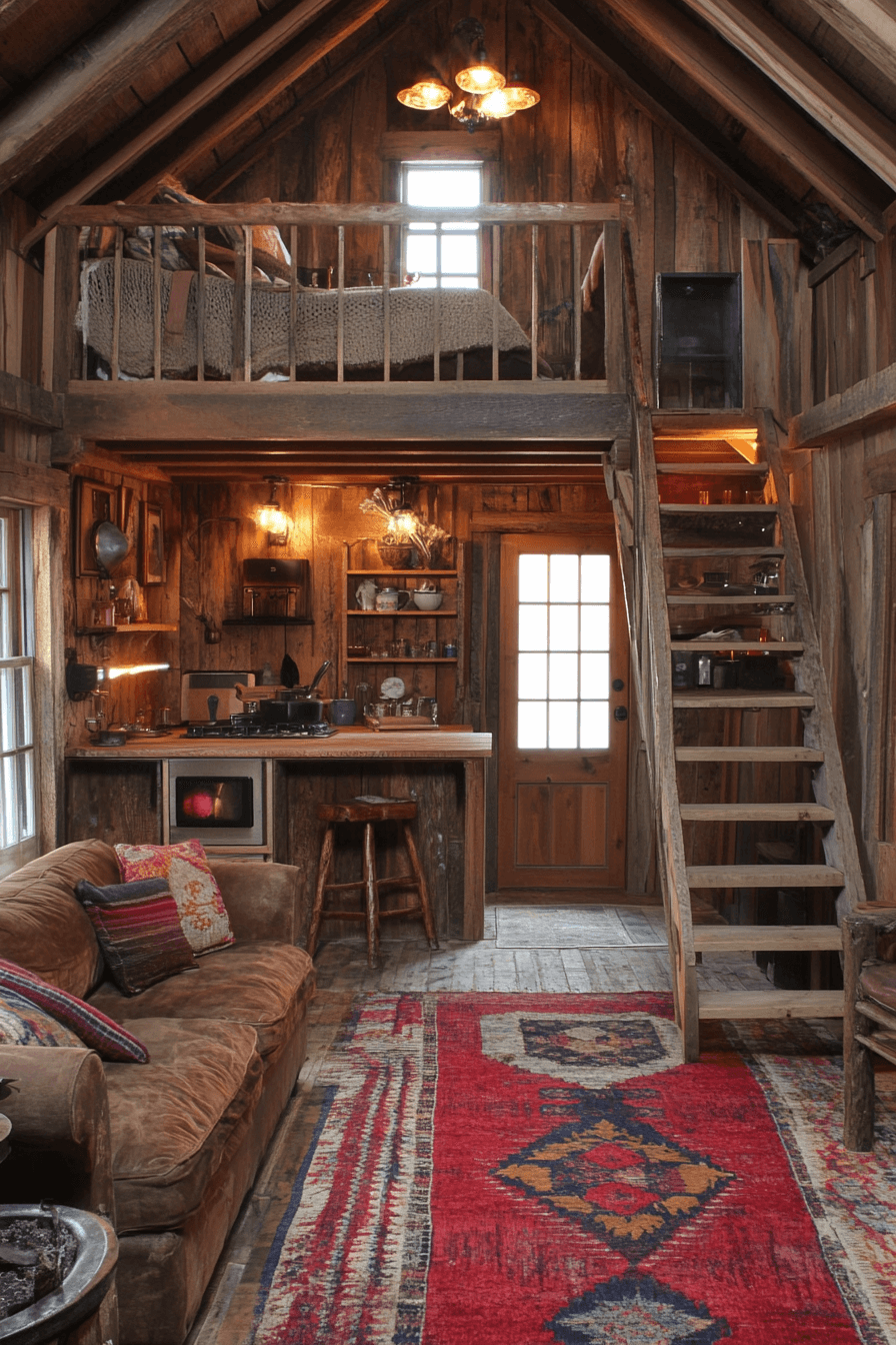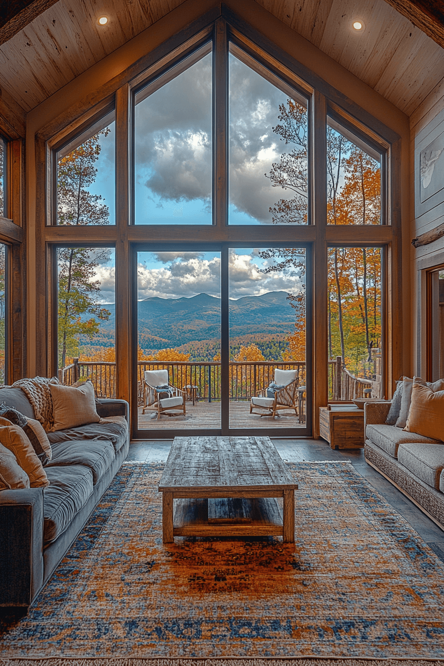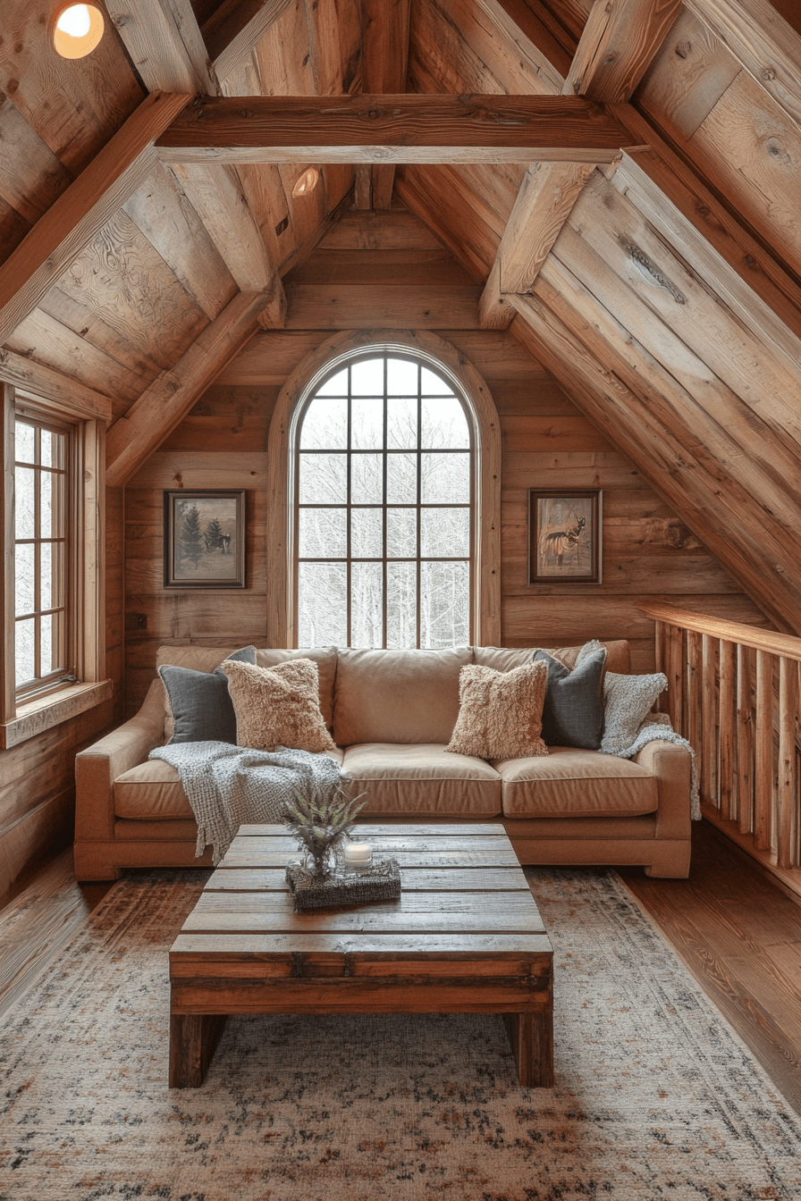 Exposed wooden beams, paneled walls, and artisanal furnishings create a timeless rustic atmosphere. Traditional patterns and textures add warmth and personality, making this style perfect for those who cherish the heritage and authenticity of cabin living.