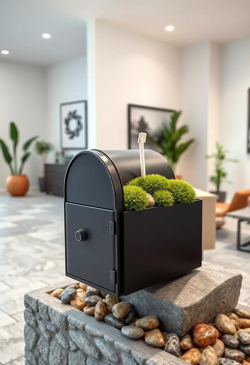 The Artistic Arrangement of Pebbles and Moss Complementing a Miniature Mailbox Garden