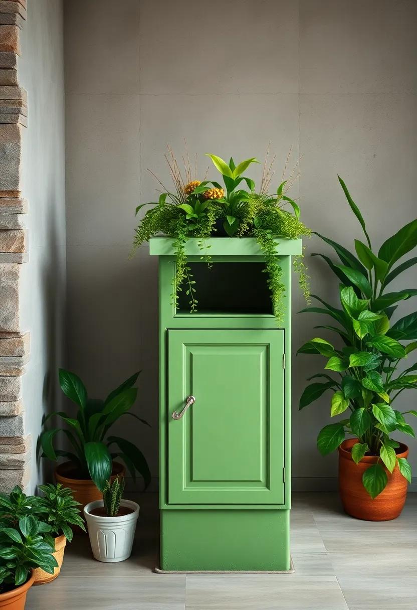 Arranged with thoughtful precision, these eco-friendly vessels create a harmonious rhythm around the mailbox, enhancing its presence rather than overwhelming it. Their neat alignment highlights the care invested in this miniature oasis, where a blend of textures and tones invites a closer look. This carefully curated ensemble showcases key benefits of using recycled pots: