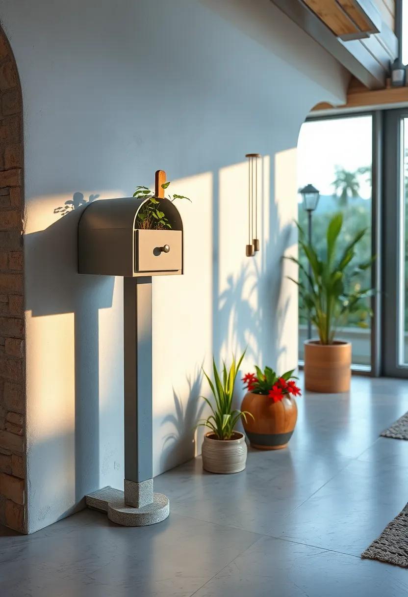 • Colorful Touches: The mailbox’s palette enhances the natural tones of the plants.
