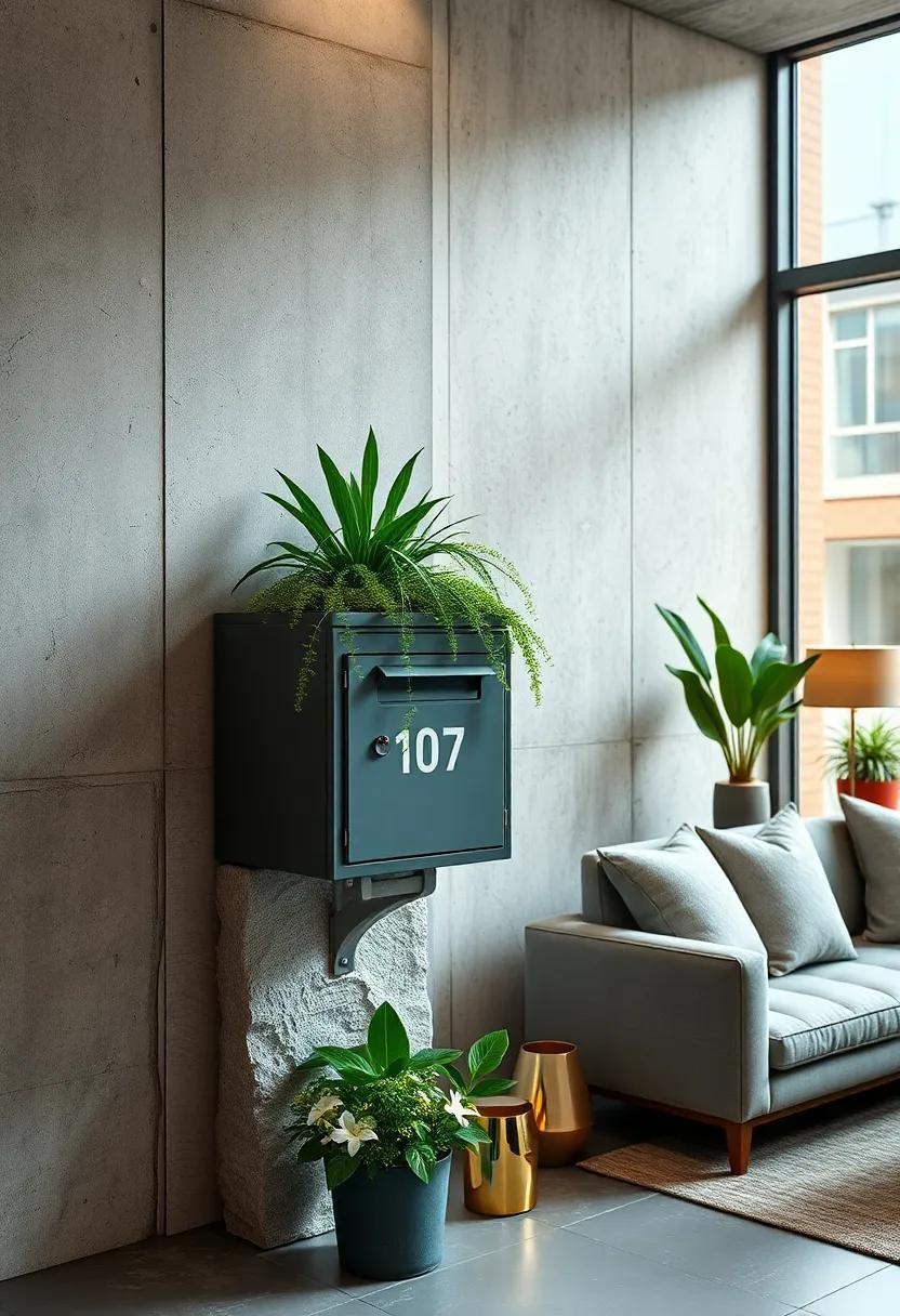 A Serene Urban Setting Highlighting the Contrast Between Concrete and a Lush Mailbox Garden