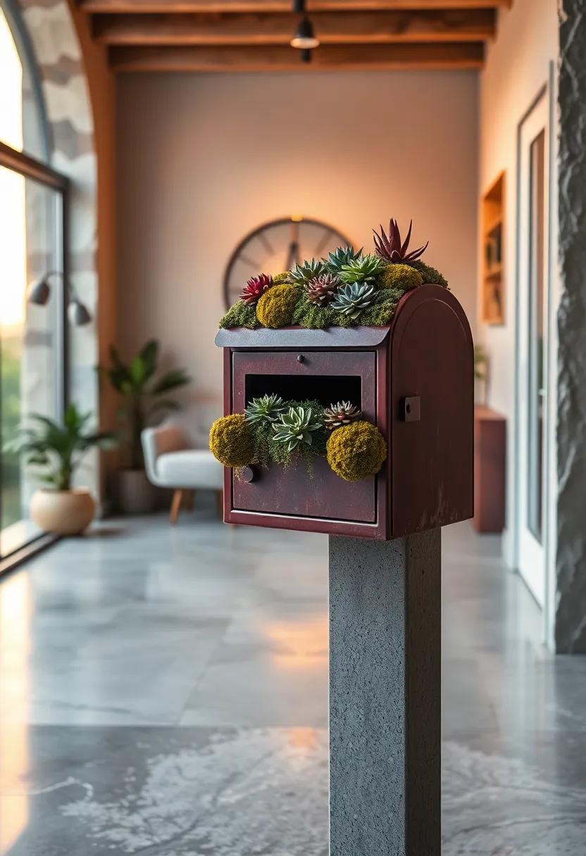 Each element is carefully chosen not only for its visual appeal but also for its ability to thrive in compact conditions, turning the mailbox into a tiny oasis that marries functionality with natural artistry.