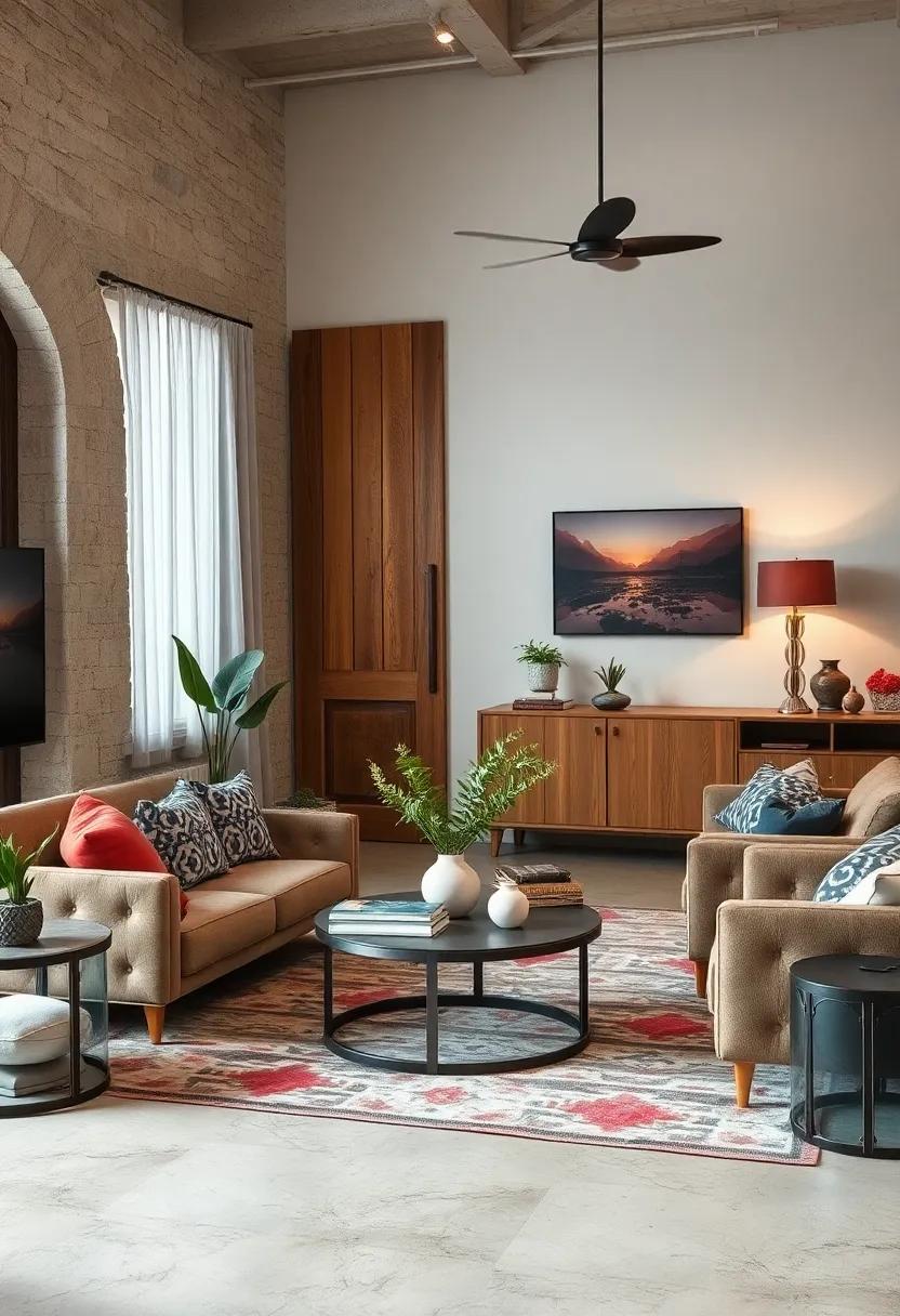 The Harmony of Rustic Wood and Sleek Metal Elements in Eclectic Living Spaces