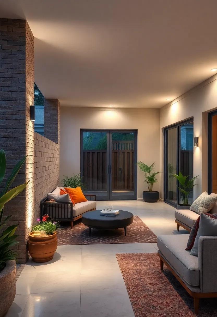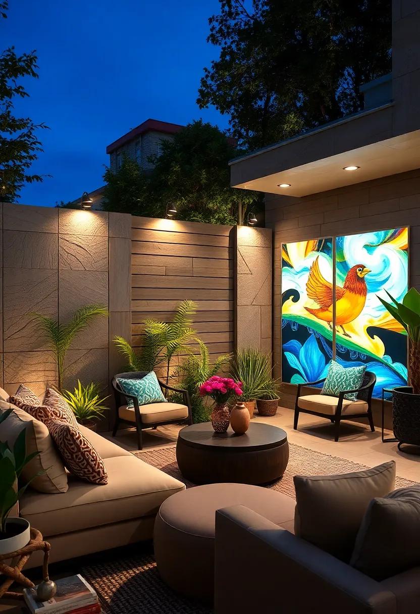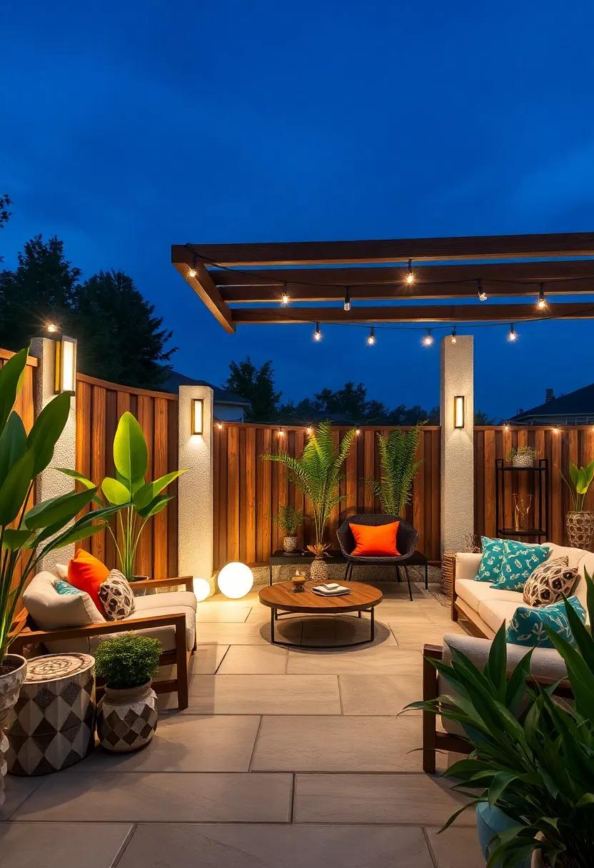 - Reflective surfaces like water features or metallic planters to amplify glow