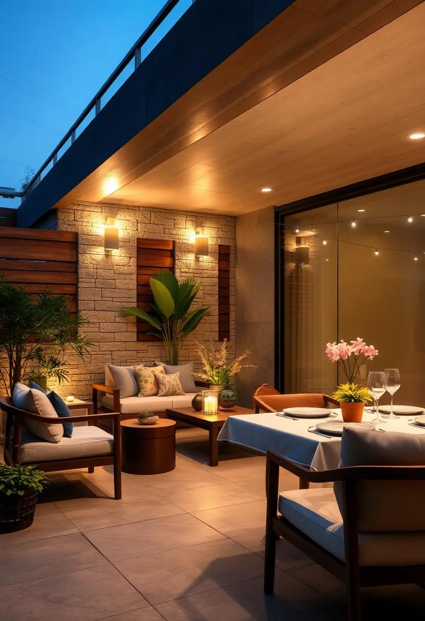 Modern Minimalist Fence Lighting Featuring Sleek Fixtures And Subtle White LED Glows For Elegant Dinners