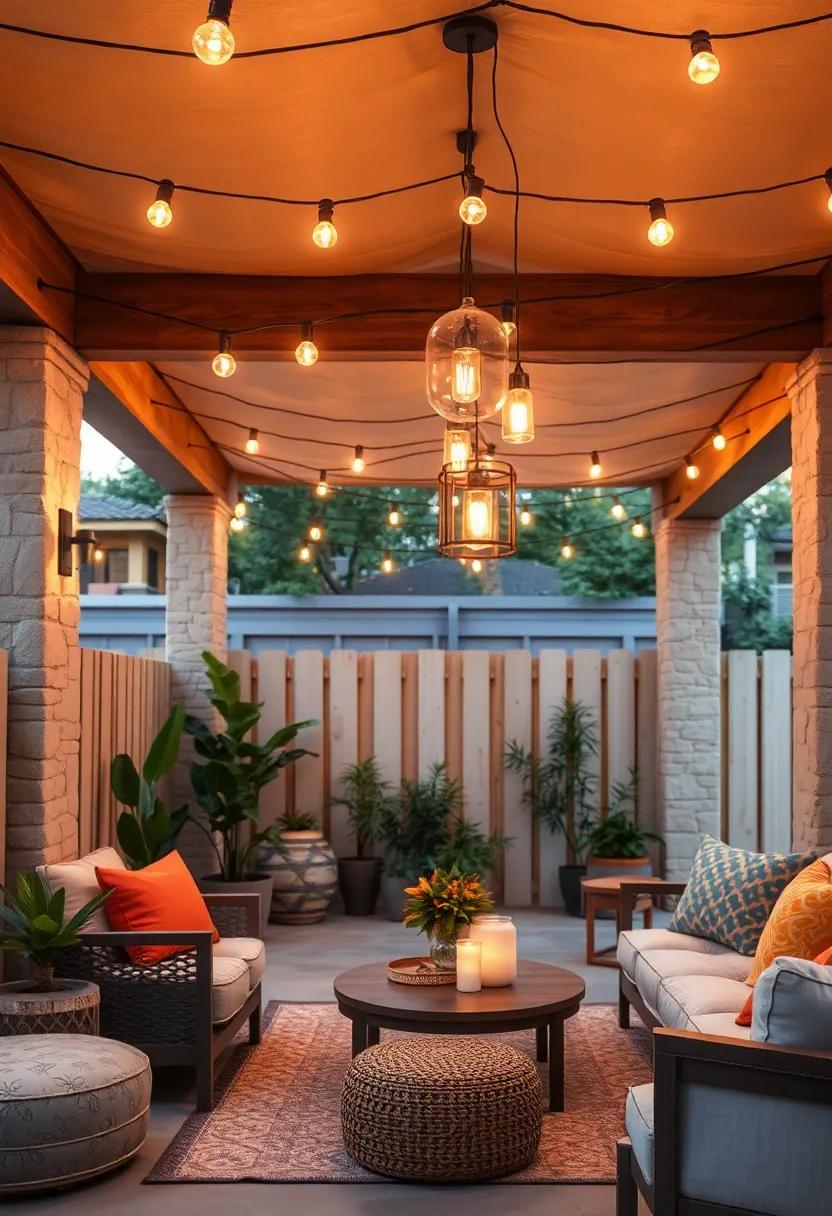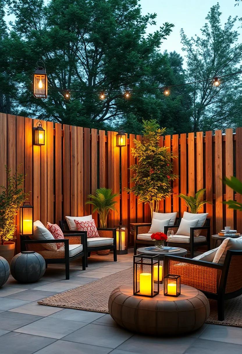Transform your fence lines into a glowing retreat by suspending clusters of string lights overhead, weaving a magical canopy that effortlessly blends ambiance with function. These luminous clusters cast a warm, inviting glow that not only brightens up your outdoor space but also frames your gathering area with subtle elegance. Whether arranging bulbs in symmetrical patterns or organic bunches, this approach adds a dynamic visual rhythm that mimics starlit skies, enhancing both intimacy and style for evening festivities.