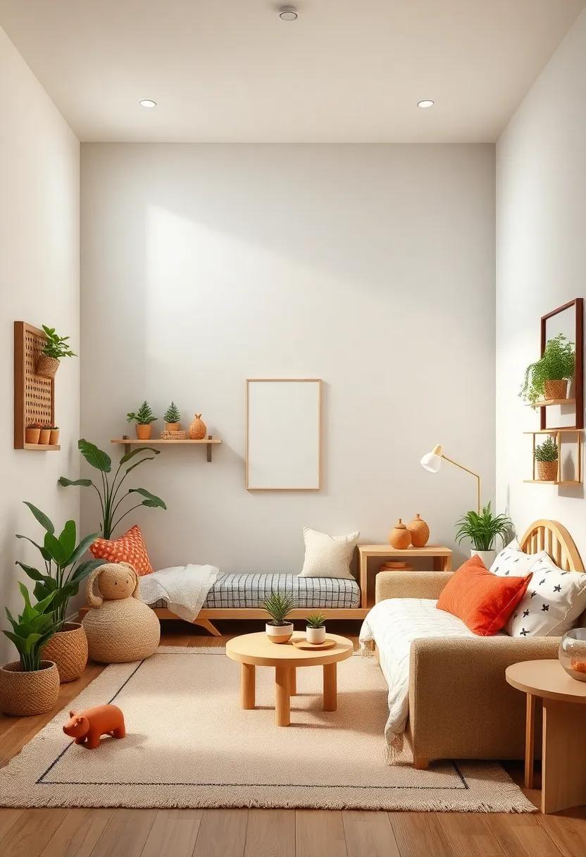 - Storage: Minimalist baskets, built-in shelves, low-profile bins