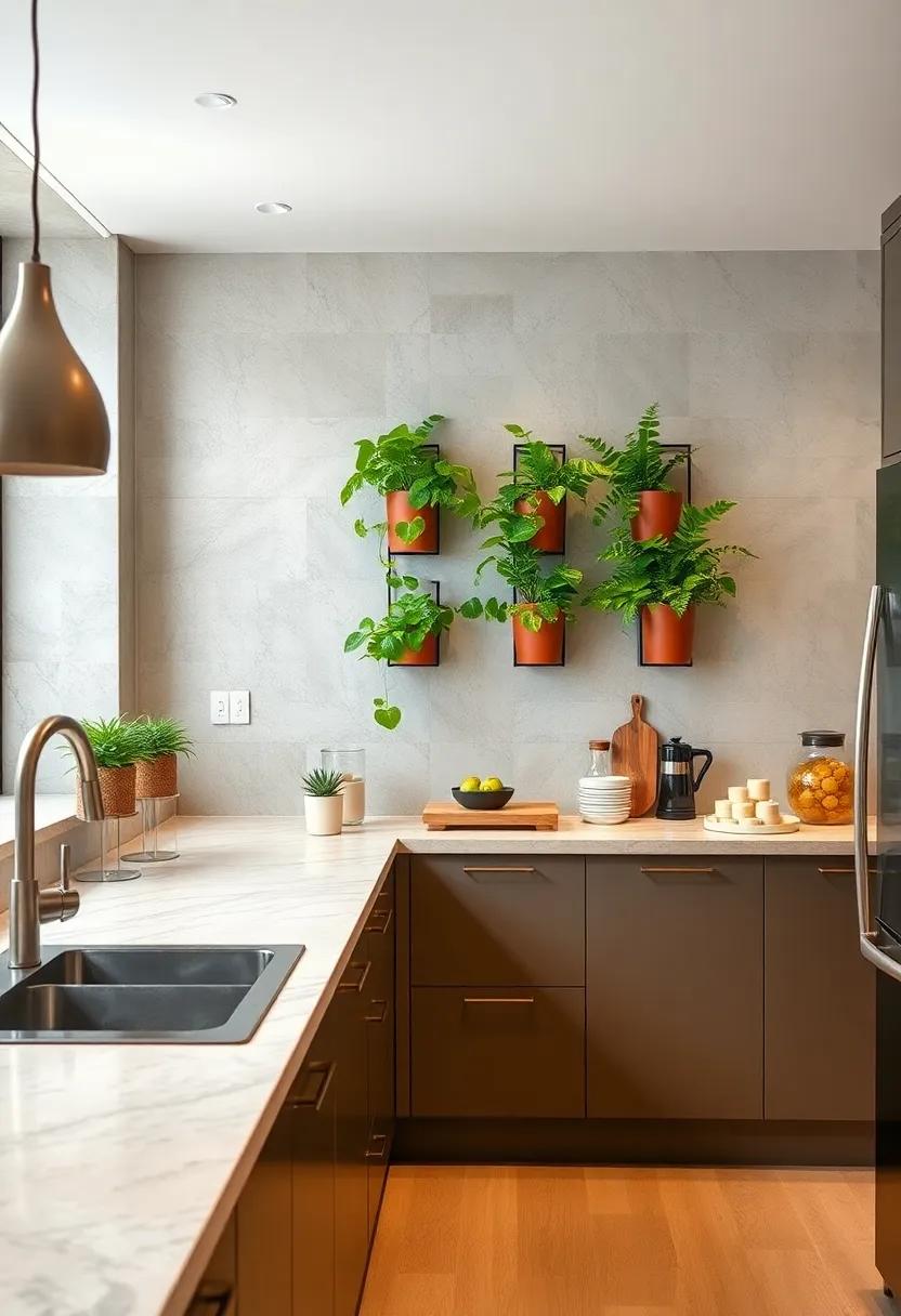 Transform your kitchen walls into a vibrant oasis by featuring slim vertical planters aligned in a neat row. These space-saving beauties not only introduce a refreshing burst of greenery but also perfect the art of subtle sophistication. Mounted seamlessly, they free up valuable counter space, allowing you to enjoy both functionality and style without compromise. Opt for planters with varying heights or different shades of green to create a textured, living tapestry that enlivens your culinary space.