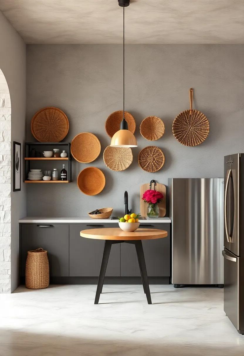 Transform your kitchen walls into a canvas of texture and utility by incorporating woven baskets as wall-mounted storage solutions. These natural elements bring warmth and an artisanal touch to your cooking space, effortlessly breaking the monotony of neutral-toned walls. Not only do they provide convenient storage for small kitchen essentials, but their layered patterns and earthy hues introduce a rhythmic visual appeal, turning functional organization into captivating décor.