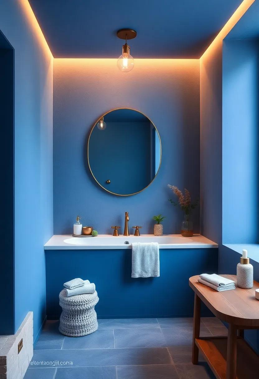 - Soft textiles like plush navy towels or a pale blue bath mat to maintain color harmony and comfort.