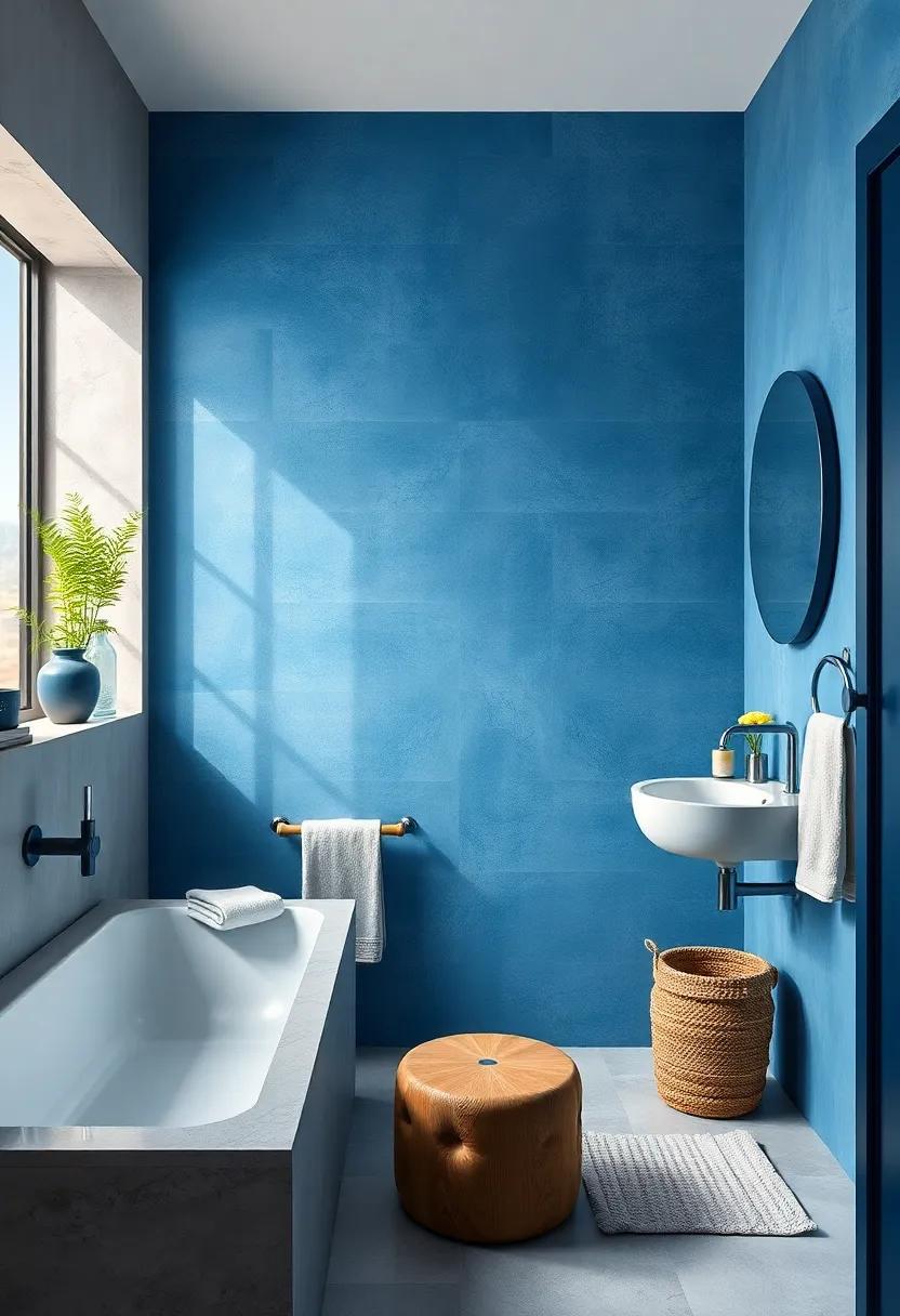 Urban Blue Bathroom Using Industrial Elements And Bold Blue Concrete Walls For A Modern Edge