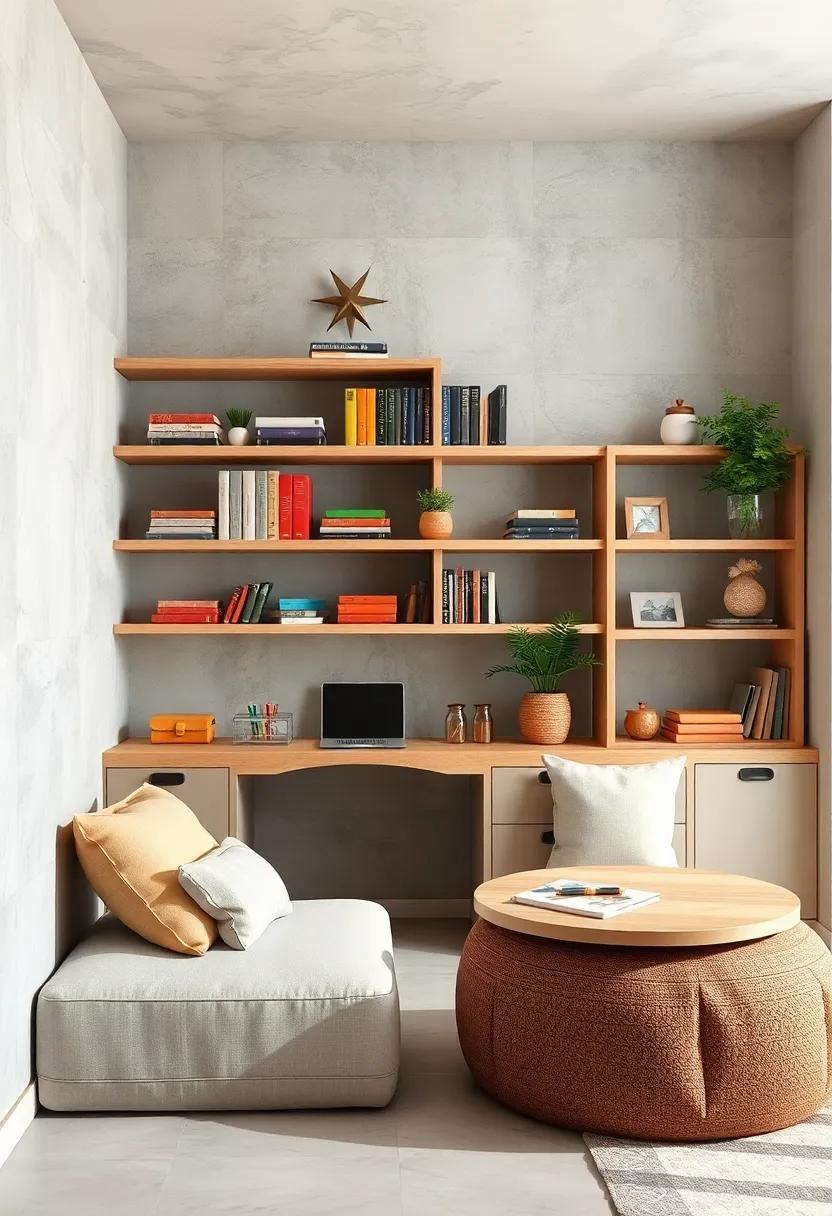 Multifunctional Furniture Pieces Blending Storage and Seating in a Chic Kids Study Room