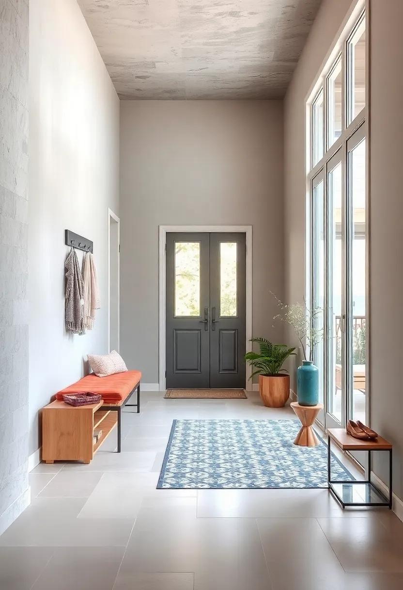 To balance personality with practicality, select furniture and accessories that combine function with style. A storage bench upholstered in a tactile fabric or a coat rack with a graphic print can serve as both practical support and a statement piece. Here’s a quick reference to pairing bold patterns and textures effectively without cluttering your entryway: