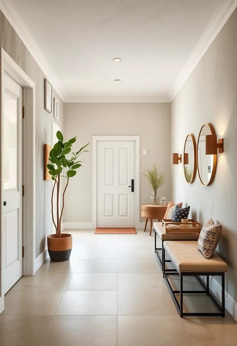 Mirrors are transformative tools that extend the spatial perception of compact entry halls, making them feel more open and inviting without requiring physical expansion. By strategically placing a mirror opposite the door or alongside a narrow wall, you can reflect natural light and visually double the available space. This not only brightens up the entry but also offers a fresh, airy ambiance that welcomes guests warmly. Consider using full-length or oversized mirrors with sleek frames to add elegance while amplifying the light flow.