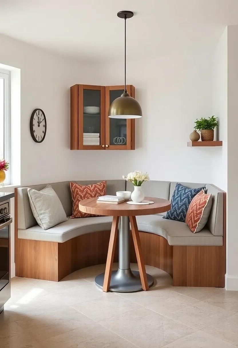 Space-Saving Corner Tables with Built-in Bench Seating for Practical Yet Inviting Small Kitchens