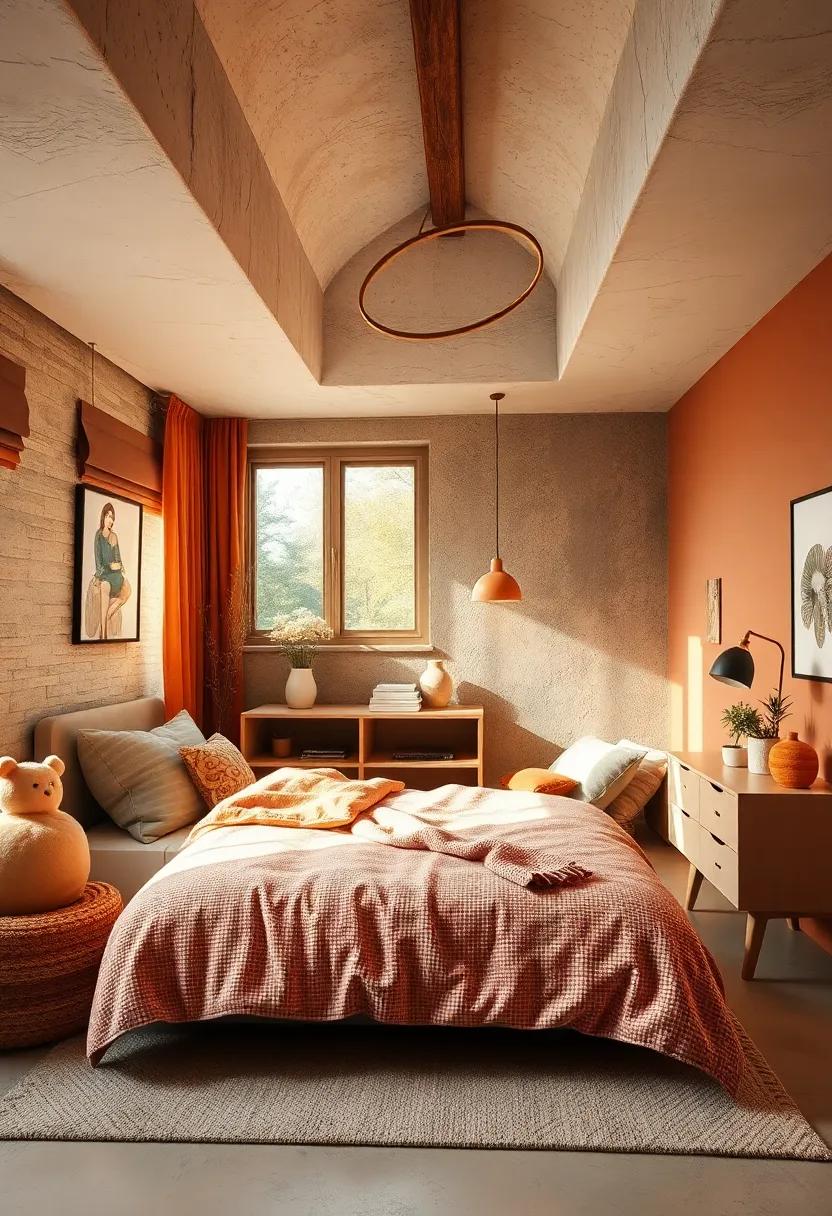 Bringing warmth and texture into a child’s bedroom has never been easier with the incorporation of burnt orange bean bags and cushions. Their rich, earthy hue complements a wide range of autumn-inspired palettes, creating an inviting and snug vibe that beckons little ones to sink in with their favorite book. This color naturally enhances natural light, casting a gentle glow that turns any reading nook into a comforting retreat away from the day’s bustle. Paired with soft, tactile fabrics like velvet or suede, these seating elements not only provide comfort but also add a layer of visual depth and sophistication to the space.