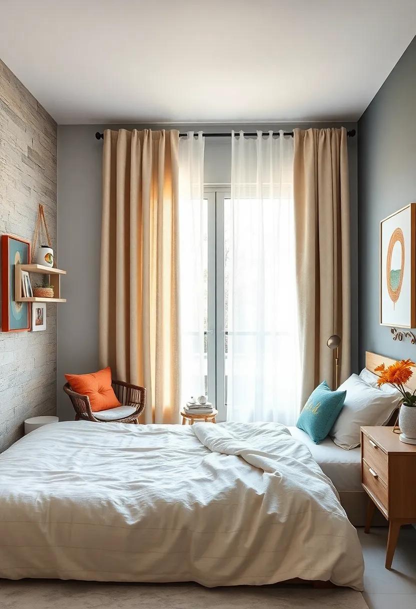 - Linen curtains soften incoming daylight and add subtle texture without overpowering the room’s serene palette.
