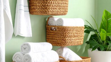 Woven baskets are both functional and decorative, perfect for storing towels, toiletries, and other essentials. Arrange a mix of sizes on open shelves or beneath your vanity-larger baskets for rolled towels and smaller ones for skincare products. To personalize, seek out baskets adorned with tassels or pom-poms, or craft your own for a unique touch. Layering these baskets adds texture and warmth, instantly transforming your bathroom into a cozy retreat.