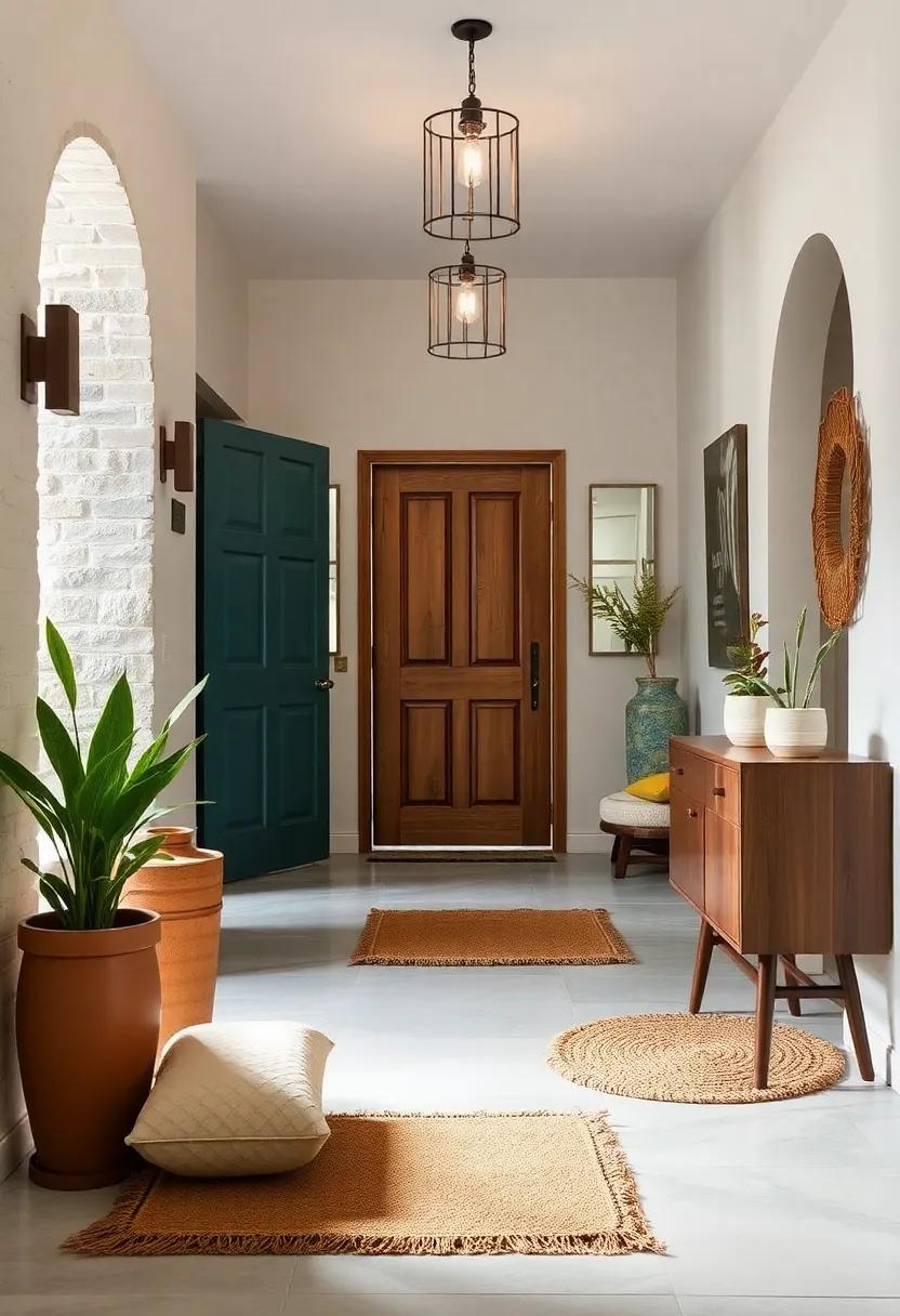 Effortless Layering of Natural Textures and Earthy Tones for a Cozy Boho Hallway Ambiance