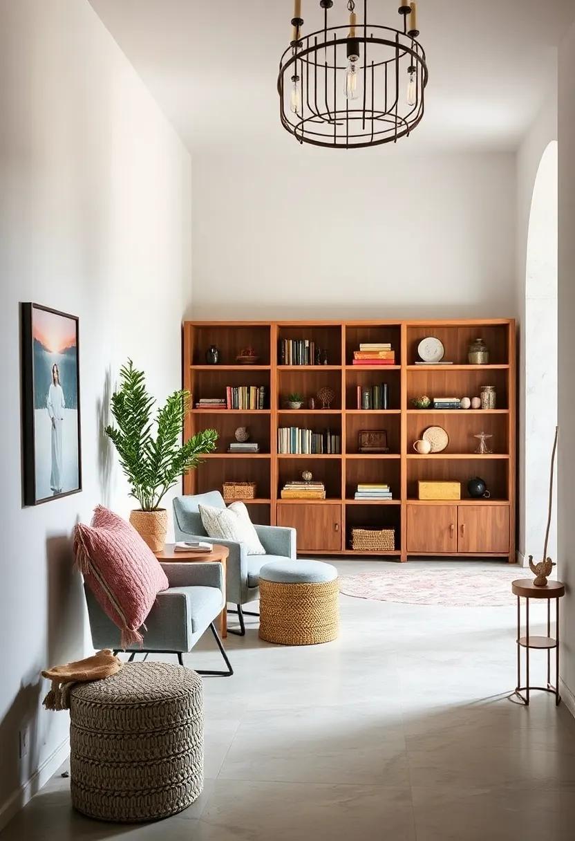 Artisan Ceramics and Sculptural Objects Positioned as Focal Points Along a Boho Chic Hallway