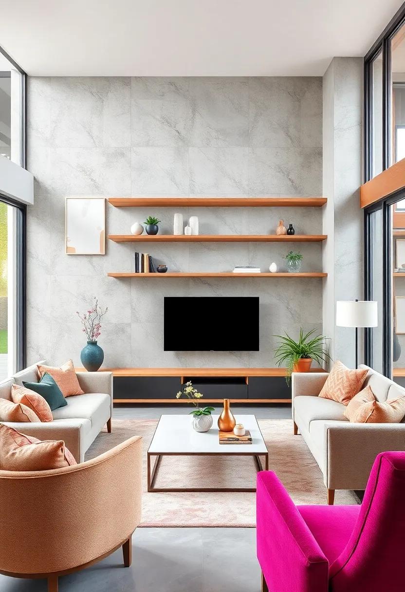 Breaking away from the conventional straight-lined shelving, asymmetrical designs offer a fresh way to highlight your most cherished decor pieces. These dynamic layouts play with visual balance, guiding the eye toward singular elements like a sculptural vase, a vibrant painting, or a quirky collection of books. The irregular spacing creates pockets of interest that prevent monotony, allowing each item to breathe and shine on its own. By combining varying shelf lengths and heights, you invite a sense of movement and creativity to your living room walls.