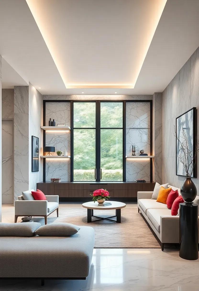 To recreate this atmospheric aura in your home, focus on layering soft light sources that complement the marble’s cool tones while accentuating its warmth. Consider integrating: