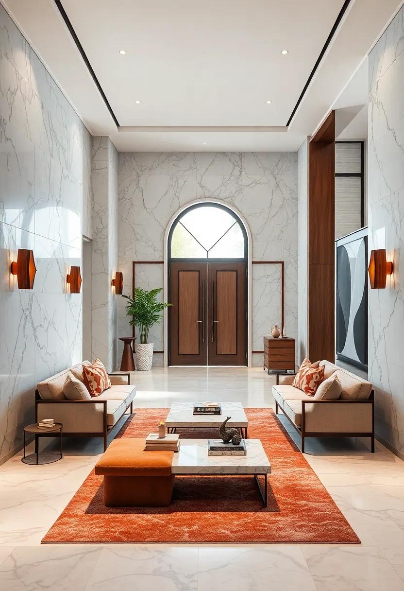 A Marble Accent Wall Behind The Front Door With Subtle Veining For Understated Luxury