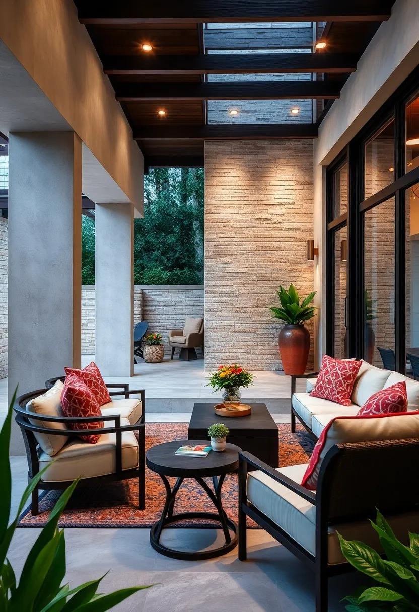 - Weather-resistant cushions in muted tones to enhance comfort while maintaining sophistication.