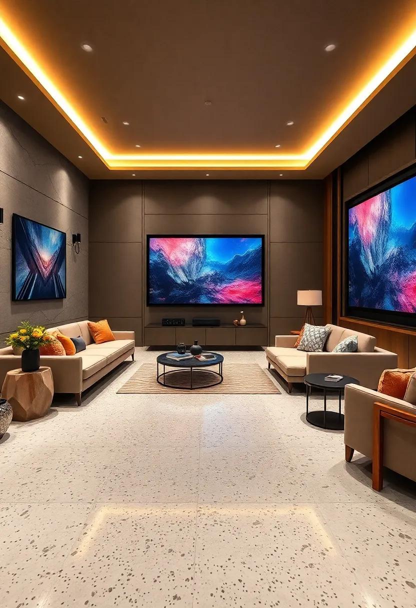 Elevate Ambient Lighting to Complement Sleek Terrazzo Flooring in Upscale Home Theaters