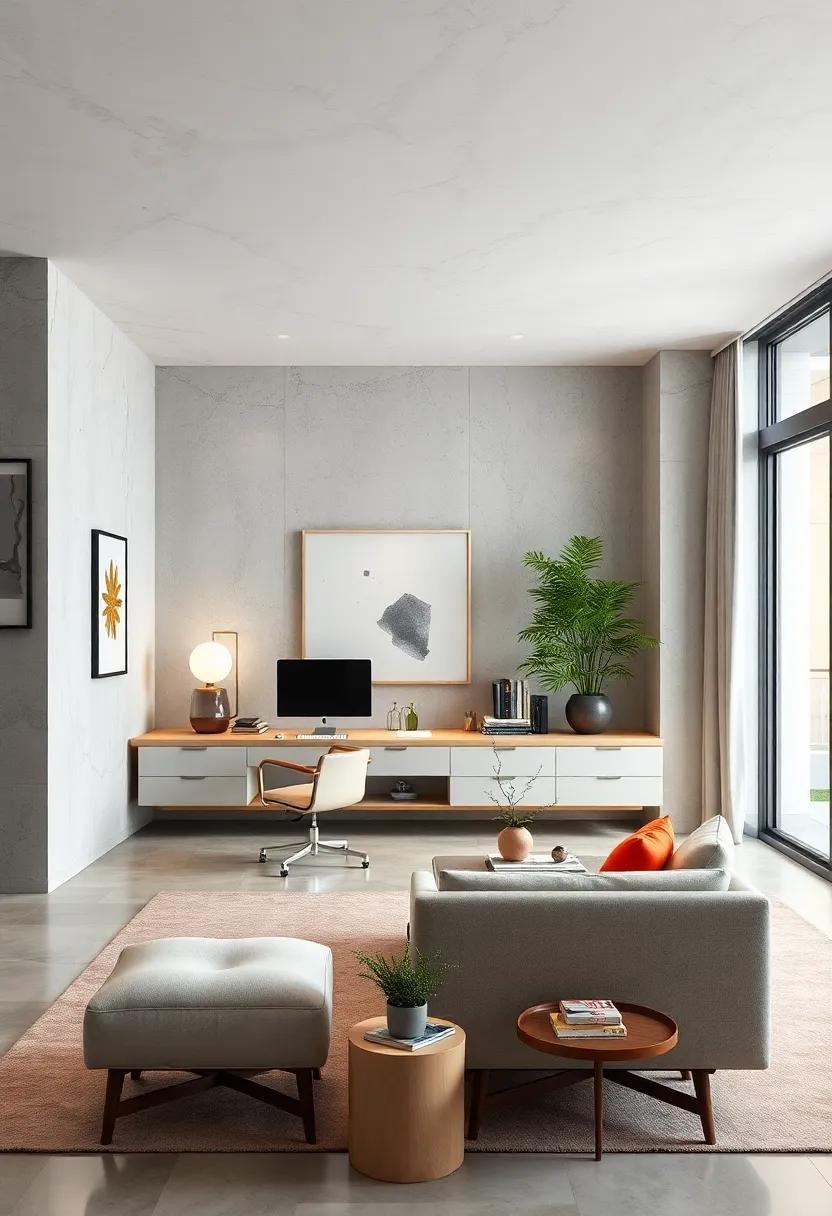 By integrating these design principles, your workspace becomes more than just a functional area – it evolves into a quiet refuge where ideas breathe and inspiration flows. The merging of artistic expression with minimalist furniture not only accentuates the aesthetic appeal but also revitalizes your workday mindset. This harmonious balance encourages sustained productivity and mindfulness, perfect for those who value both work efficiency and artistic ambiance within the same environment.