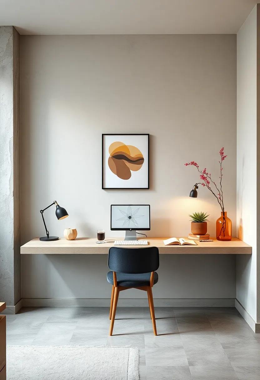 Floating Desk Corners That Create Zen-Like Focus Amidst Soft Textures and Muted Palette