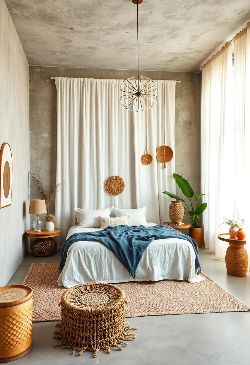 Step into a sanctuary where walls tell stories through vibrant fabrics and handwoven tapestries that echo the rich heritage of distant lands. Each pattern becomes a brushstroke of cultural identity, imbuing the room with warmth and a bohemian spirit. The interplay of bold geometrics, intricate florals, and abstract motifs transforms plain walls into living art, inviting you to explore a mosaic of traditions. Accentuating this visual feast are handcrafted wall hangings, which add texture and depth, elevating the bedroom from a mere space to an eclectic gallery of craftsmanship.