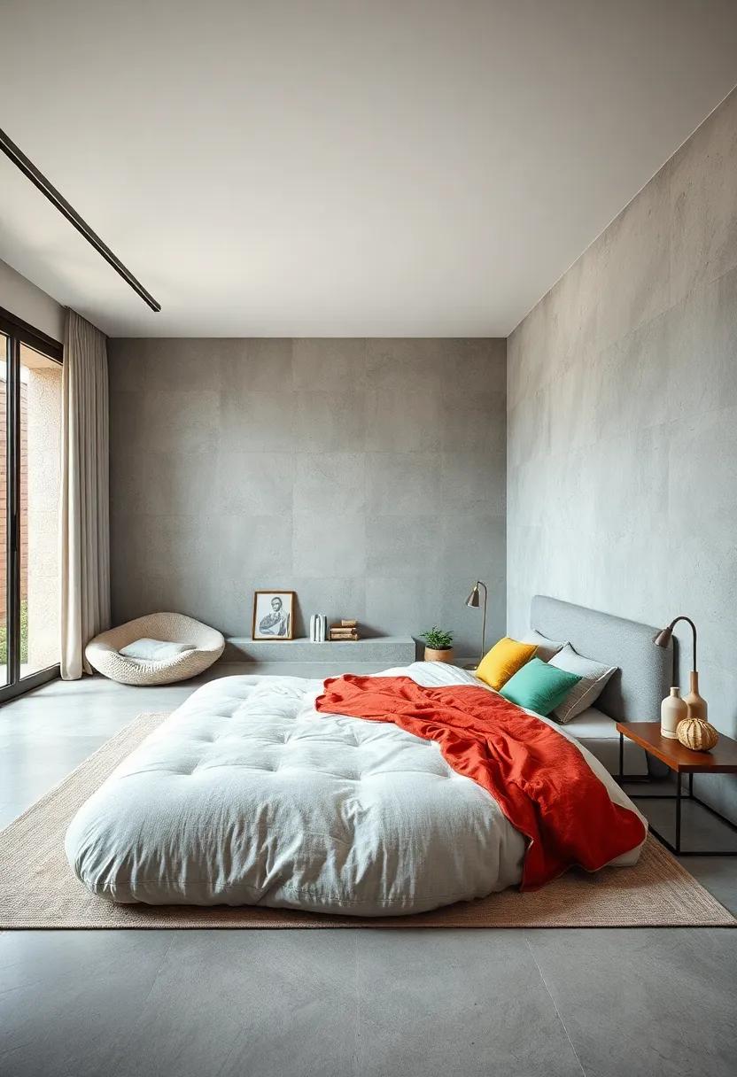 The pristine white walls in ultra-minimalist bedrooms act as a serene canvas, amplifying the subtle charm of the floor mattress. Stripped of unnecessary adornments, these bright expanses invite a calming atmosphere where every element breathes simplicity. Instead of overwhelming the space, a singular, bold art piece introduces a visual anchor, drawing the eye with deliberate intent. This thoughtful interplay between the plain backdrop and the expressive artwork creates a harmonious balance, emphasizing the room’s quiet elegance while allowing personality to quietly speak through design.
