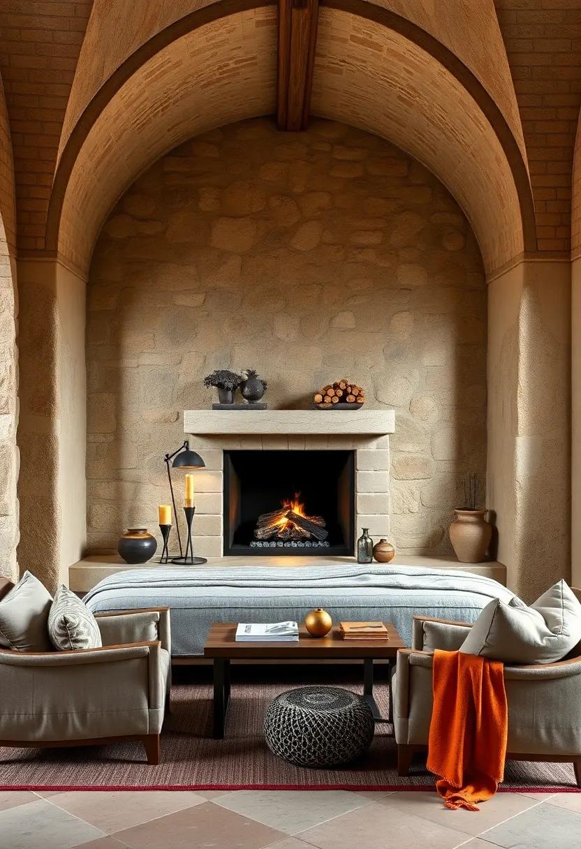 • Textural Contrast: The rough stone pairs beautifully with smooth plaster and soft textiles, inviting touch and warmth.