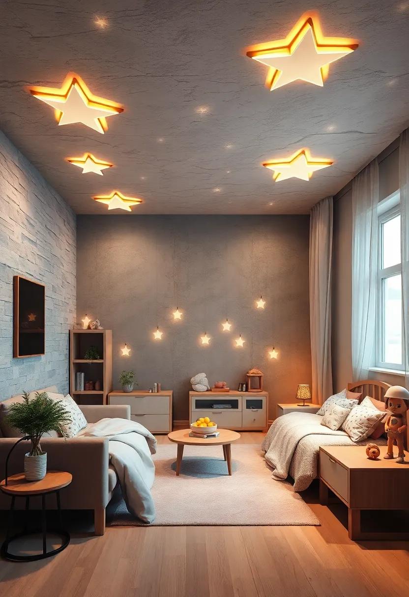 - Subtle fairy lights weaving through the room for a twinkling background glow.