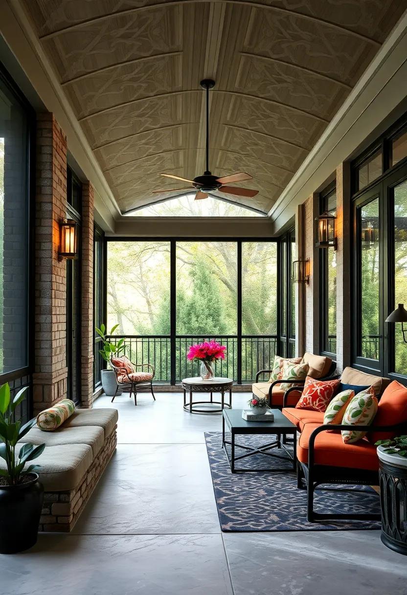 Transforming your screened porch into an enchanting retreat is effortless when you embrace bold colors and vivid patterns. Imagine walls painted in rich teal or sunny coral hues, instantly lifting the mood and inviting you to unwind. Complement these tones with patterned rugs that bring layers of texture and geometric flair, turning your porch floor into a statement piece. Mixing vibrant palettes with natural wood furniture creates a striking contrast that balances energy with warmth, making your outdoor space both lively and inviting.