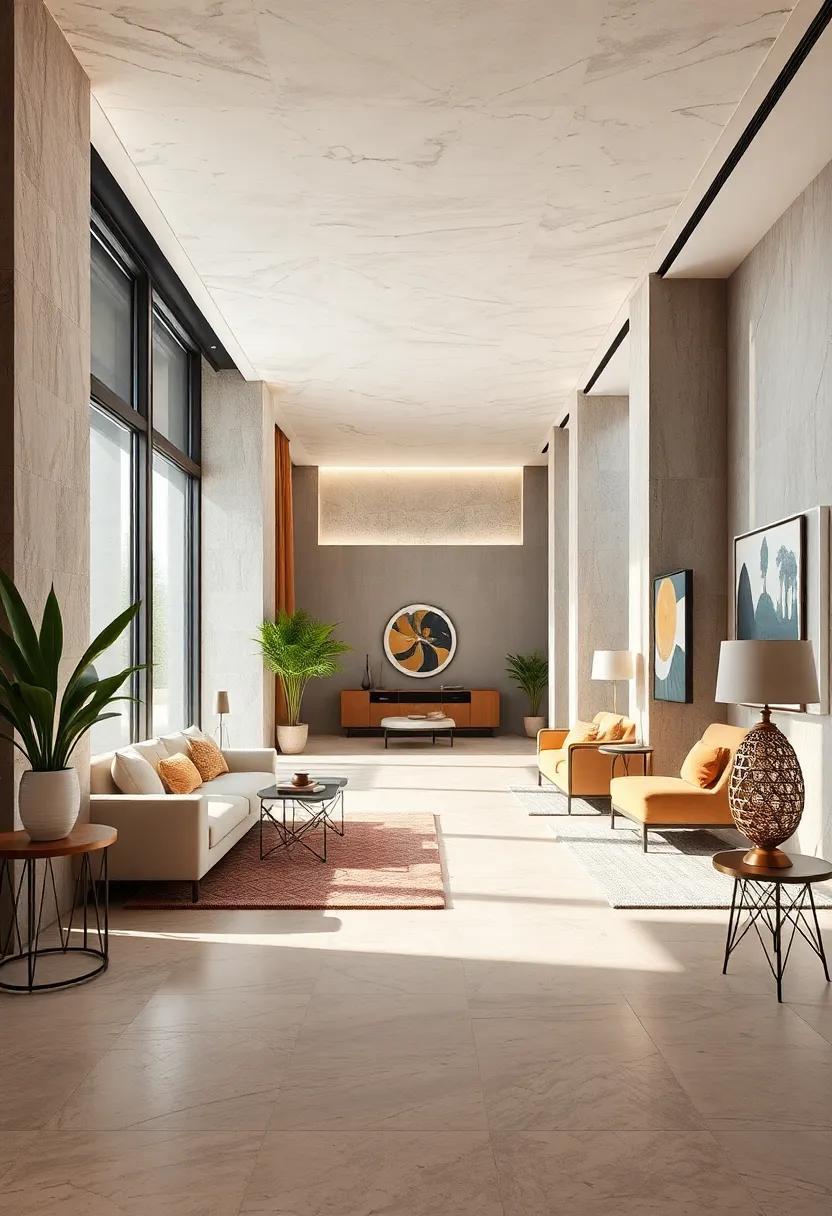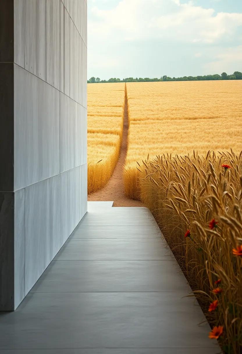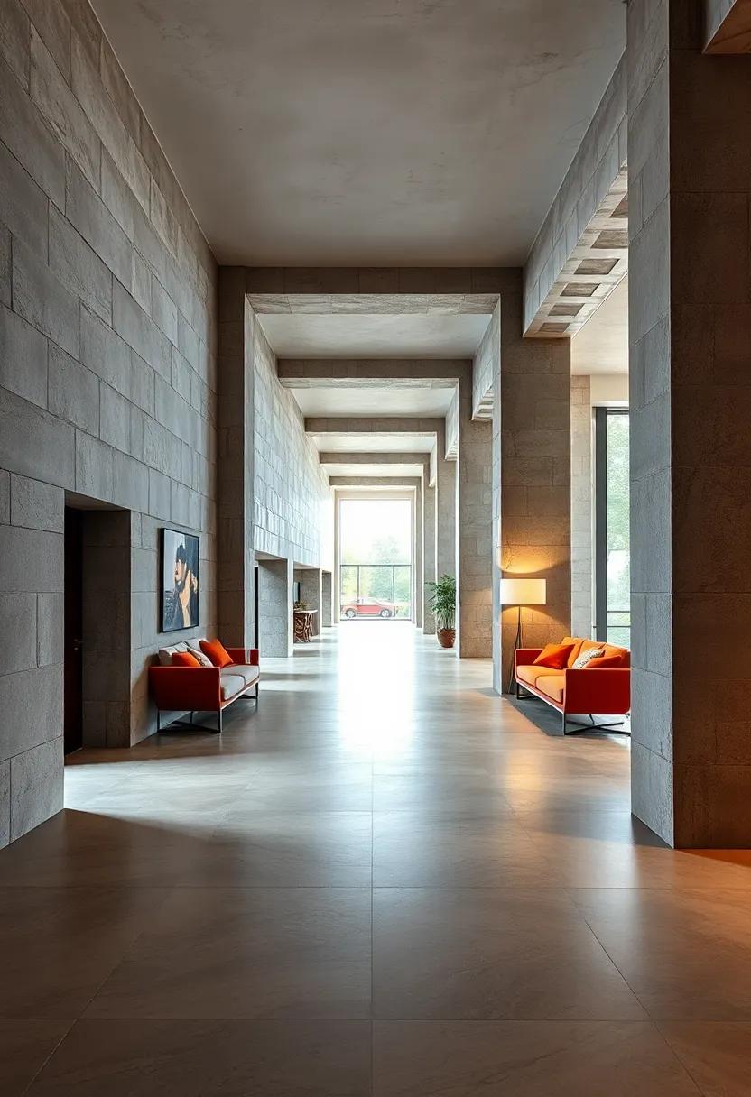 - Contrasting textures: Matte stone juxtaposed with reflective glass creates visual tension and hierarchy.