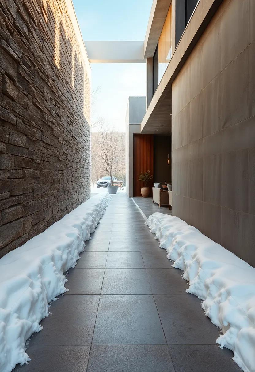 The subtle narrowing of the lane, blanketed in pristine snow, draws the viewer’s eye effortlessly deeper into the scene, crafting a compelling visual journey. This technique mirrors the natural way our eyes perceive distance, where parallel lines seem to converge at a point on the horizon. The effect is heightened by the gentle wash of soft blue shadows, which not only emphasize the crisp cold of winter but also add layers of dimensionality to the space. As the pathway tightens, it invites a contemplative pause, encouraging viewers to explore the untouched tranquility that lies beyond.