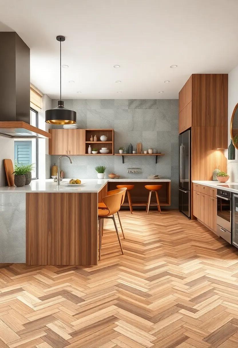 Natural Wood Grain Flooring Designs Showcasing Warmth And Rustic Elegance In Contemporary Kitchen Settings